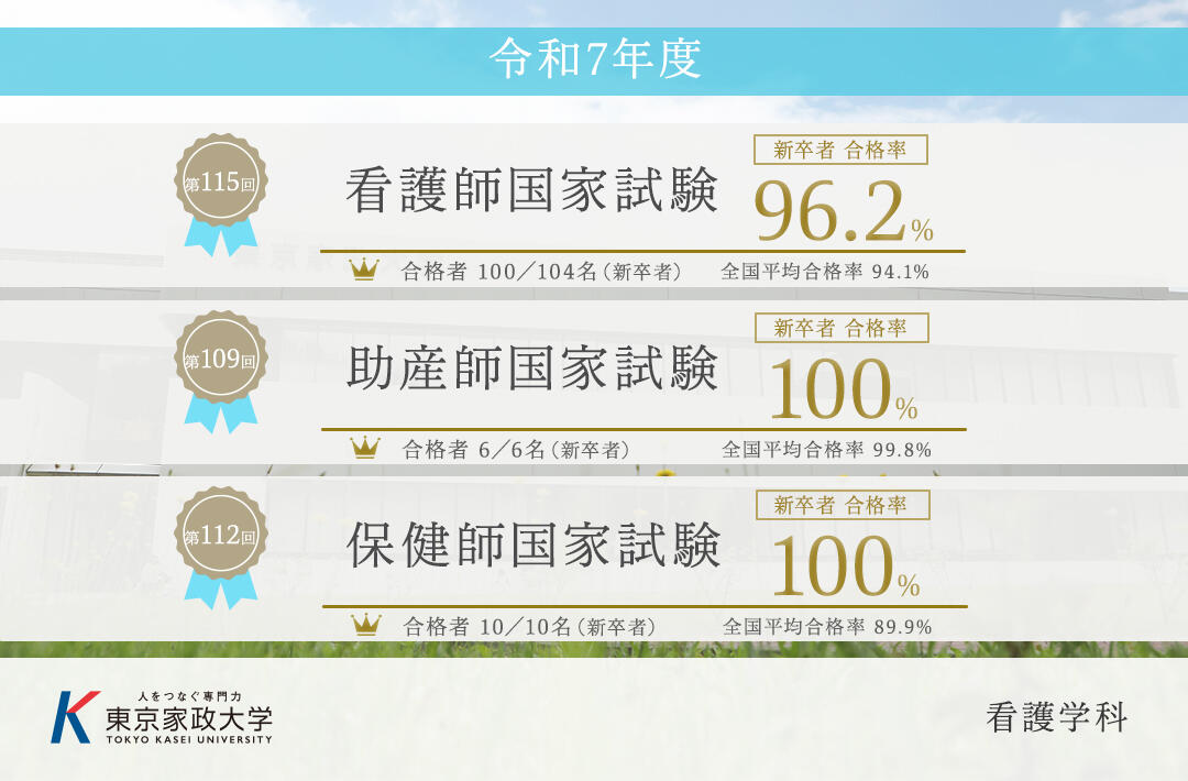 令和7年度の東京家政大学 看護学科の国家試験結果はこちらから