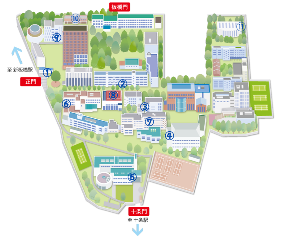 板橋キャンパスのAED設置場所をご覧いただけます。