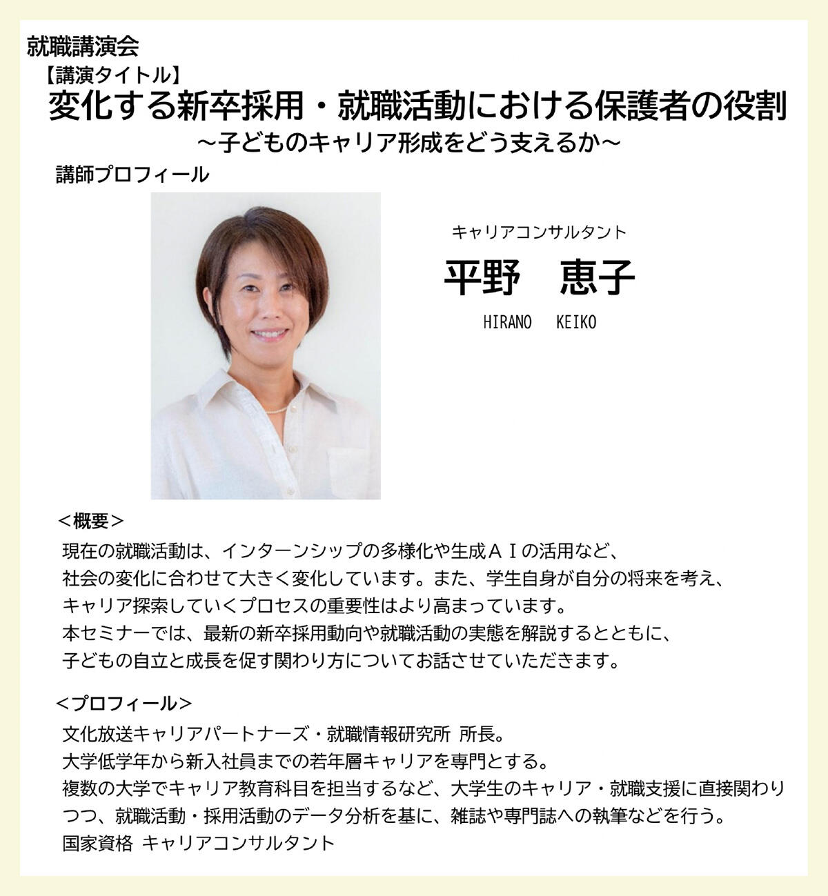 | 保護者のための就職講演会 | |