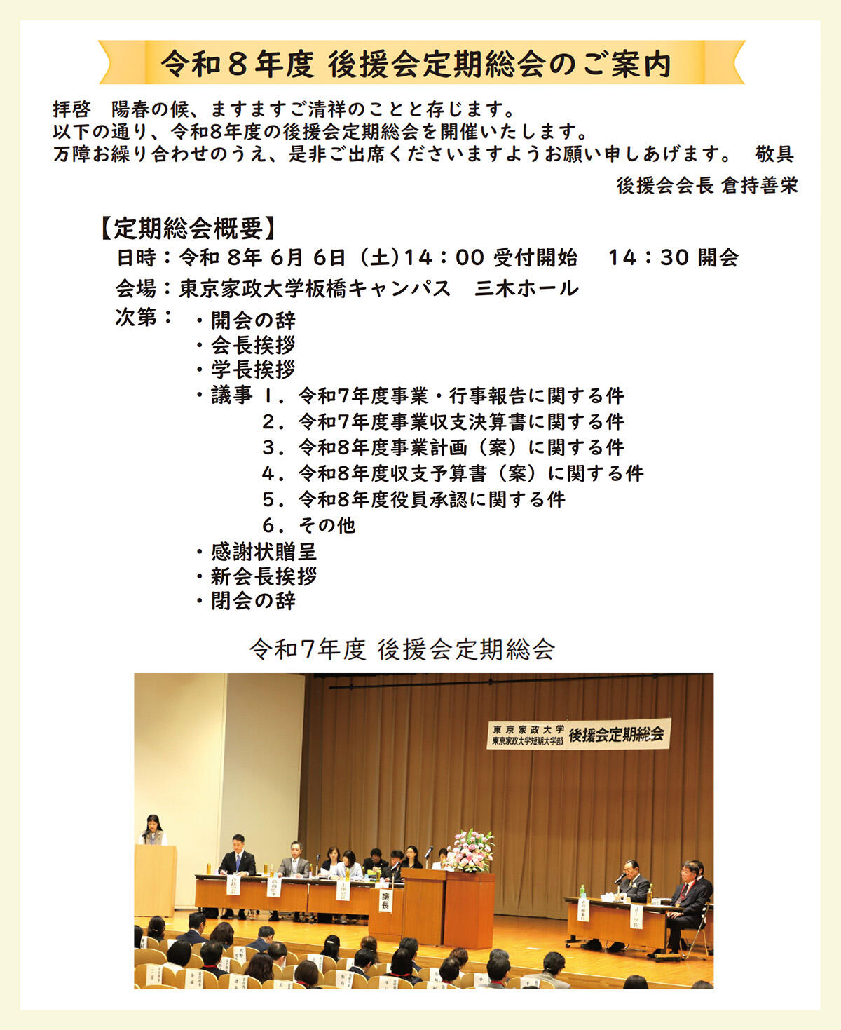| 定期総会・後援会懇親会 | |